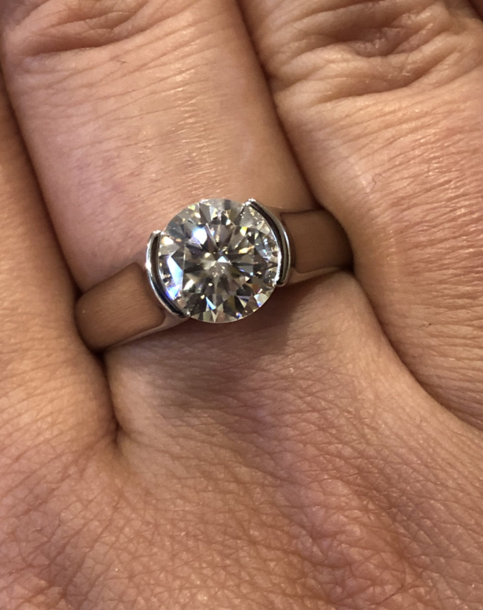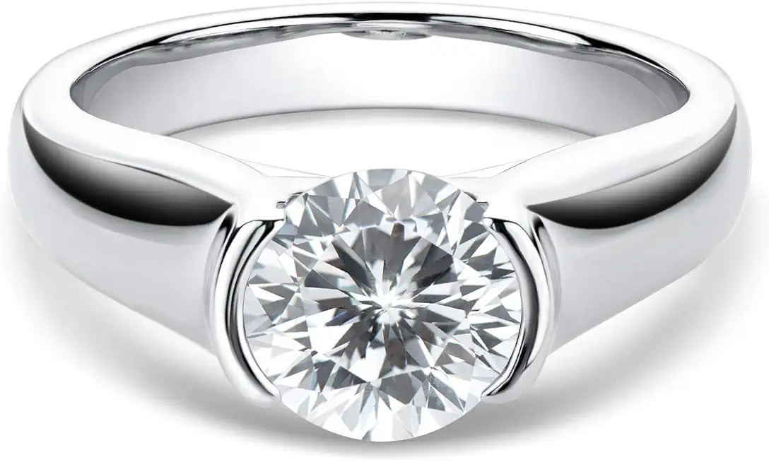 2 Carat Moissanite Ring Solitaire Bezel Setting (eternity promise band, sterling silver gold-plated) symbolizes enduring love—secure bezel protects stone while offering modern, low-profile elegance.