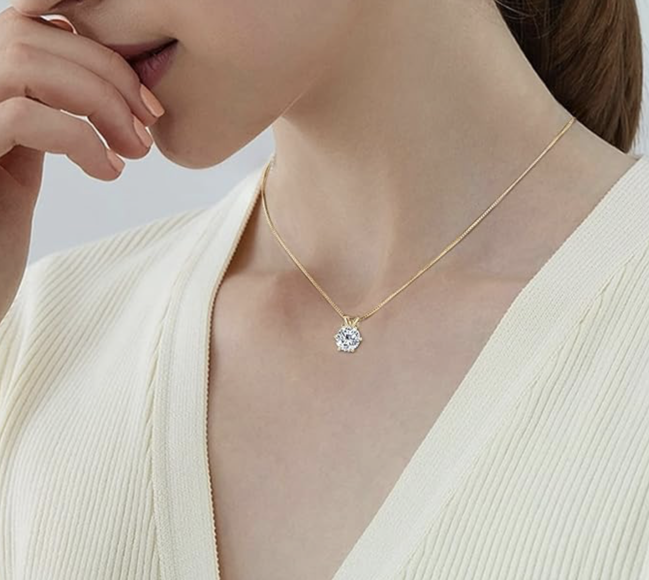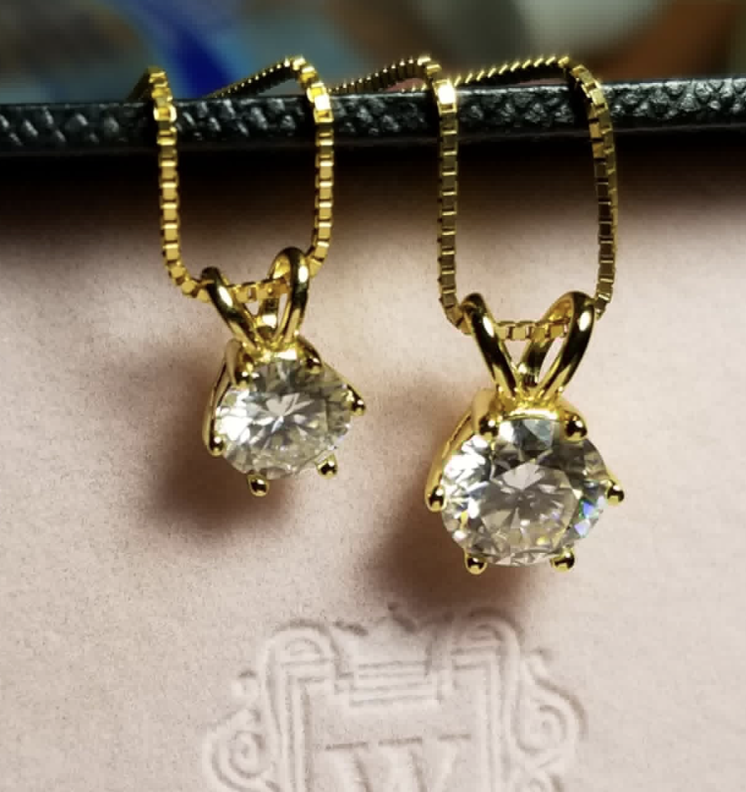 0.5/1/2/3 Carat Moissanite Solitaire Pendant Necklace (6-prong set, 925 sterling silver, 18"+2" adjustable chain) delivers classic brilliance—perfect everyday or special occasion piece for women who love timeless sparkle.