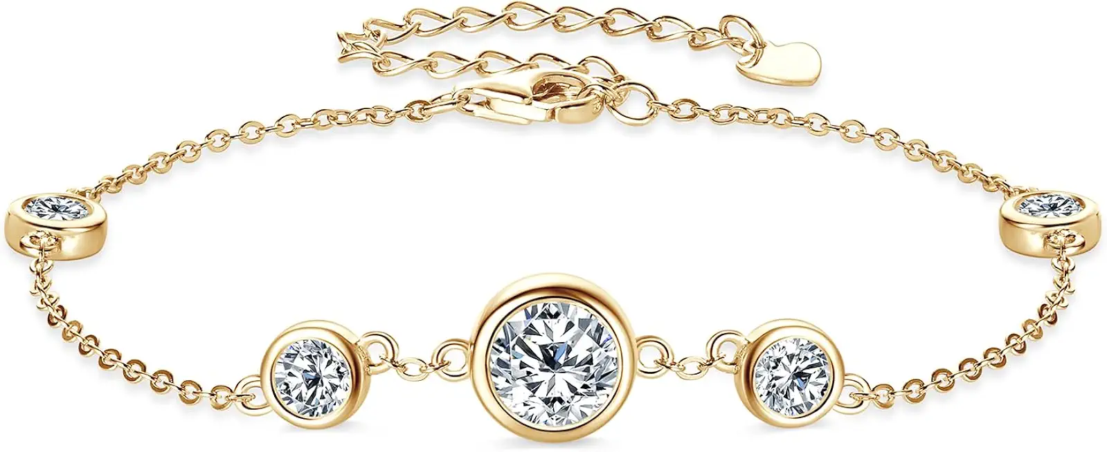 Adjustable Sterling Silver Bracelet with 4 or 5 Moissanite Pendants (bezel-setting, 6.5"+2", gold-plated) stacks beautifully—customizable family or personal birthstone look with secure, comfortable fit.